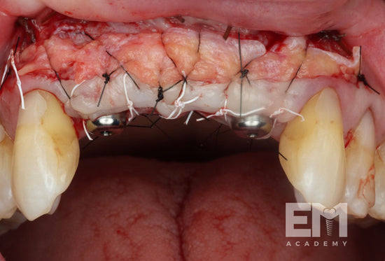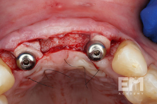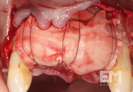 • GBR with resorbable barriers stabilized with sutures